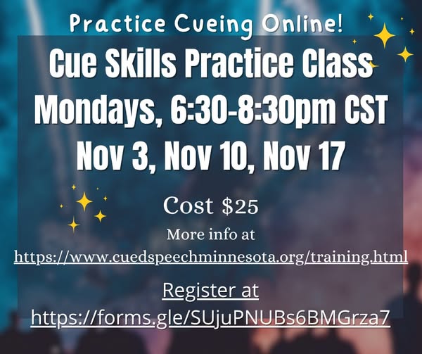 Cued Speech Association of Minnesota: Cue Skills Practice Class (Virtual)